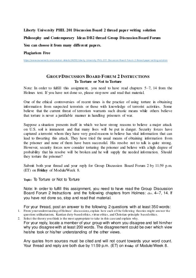 Liberty University Phil 1 Discussion Board 2 Thread Paper Writing S