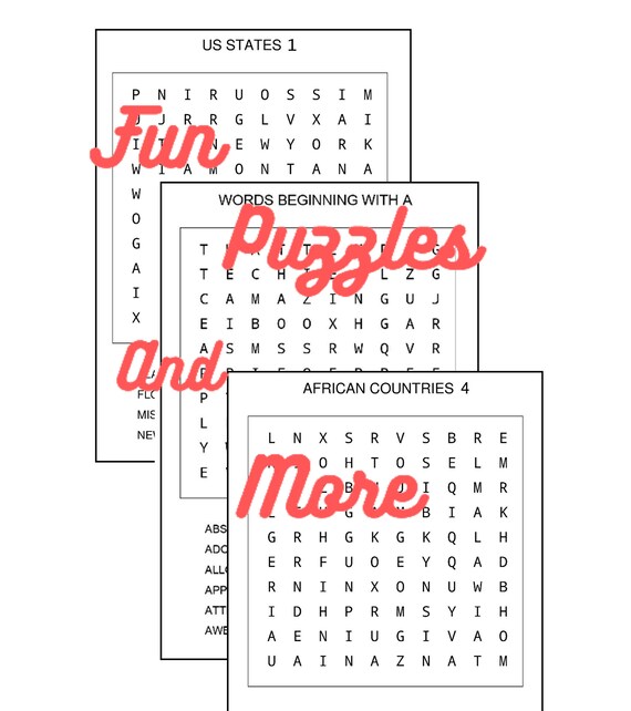 25 Kids Word Search Puzzles Puzzles For Children Wordsearch Etsy