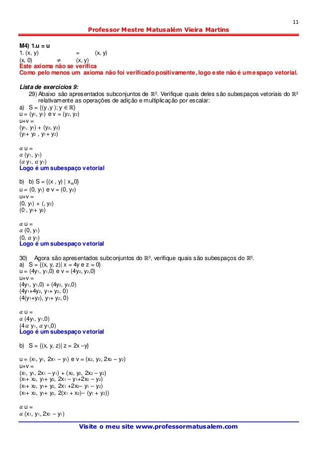Exercicios Introducao A Algebra Linear Espacos Vetoriais Subespacos Dependencia Docsity