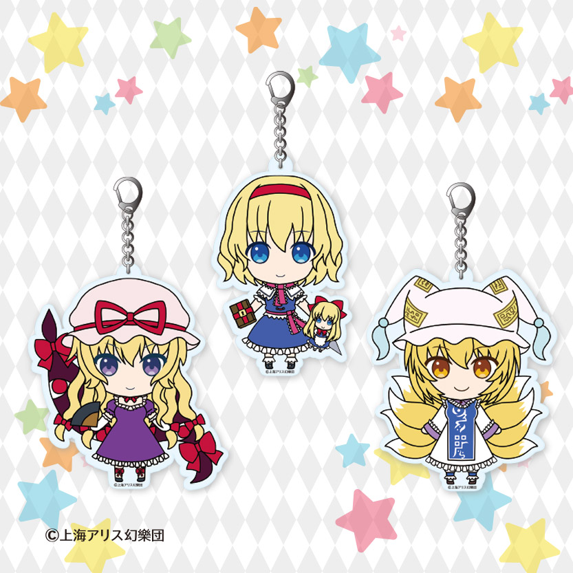 東方projectプロジェクトのグッズぷぎゅっとアクリルキーホルダー3種類です 魔理沙と霊夢とチルノの3人 ふりろー