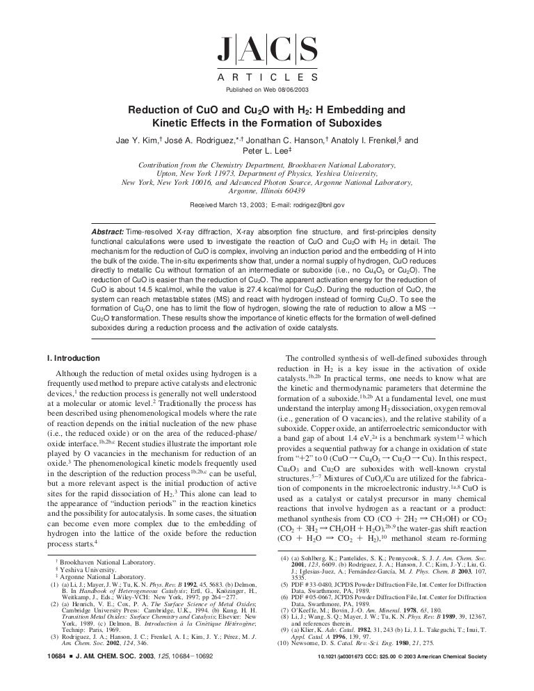 Reduction Of Cu O And Cu2o With H2 H Embedding And Kinetics Effects