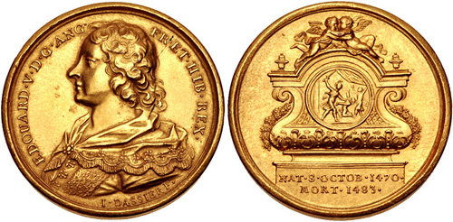 Cng Eauction 437 York Restored Edward V 14 Gilt Ae Medal 41mm 33 56 G 12h The Kings And Queens Of England By J Dassier Struck 1731