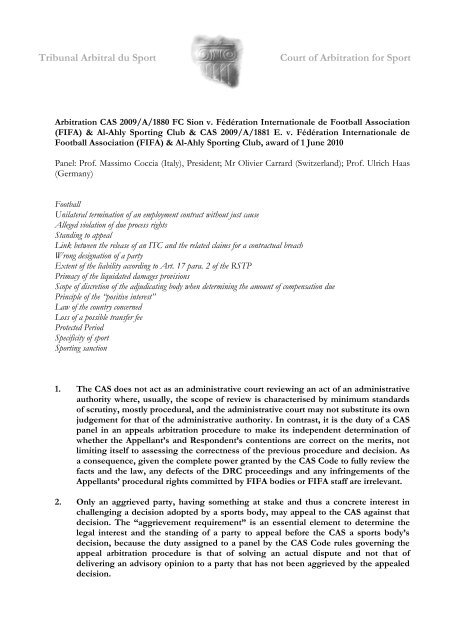 09 A 10 11 Tribunal Arbitral Du Sport Tas