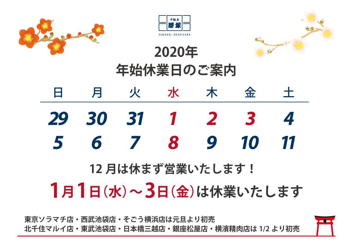 千駄木本店 年末年始の営業について 千駄木腰塚 精肉 コンビーフなら東京都文京区のコシヅカハム